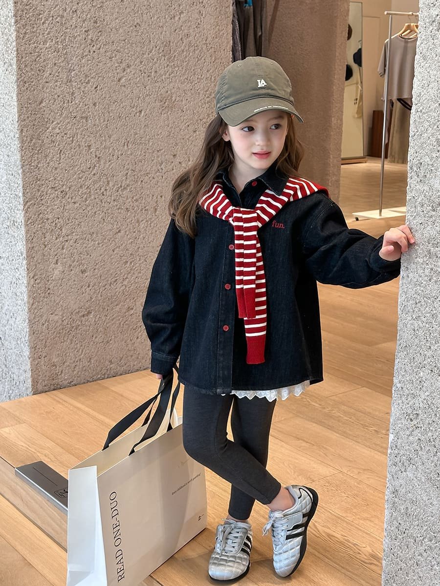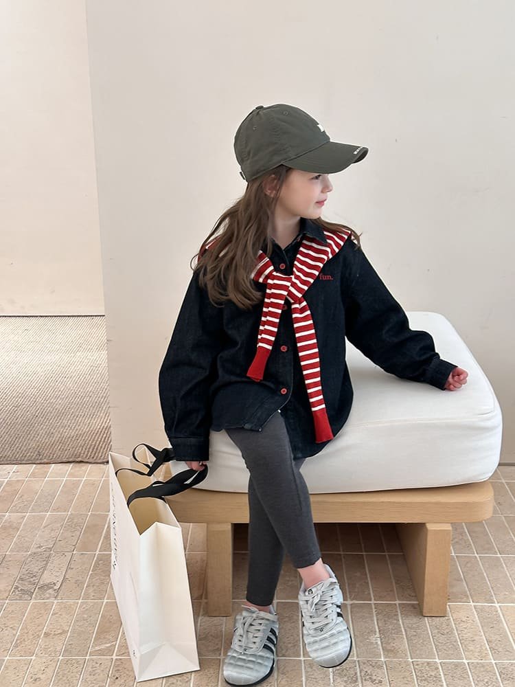 / 刺繡字母牛仔襯衫(不含披肩可另購)