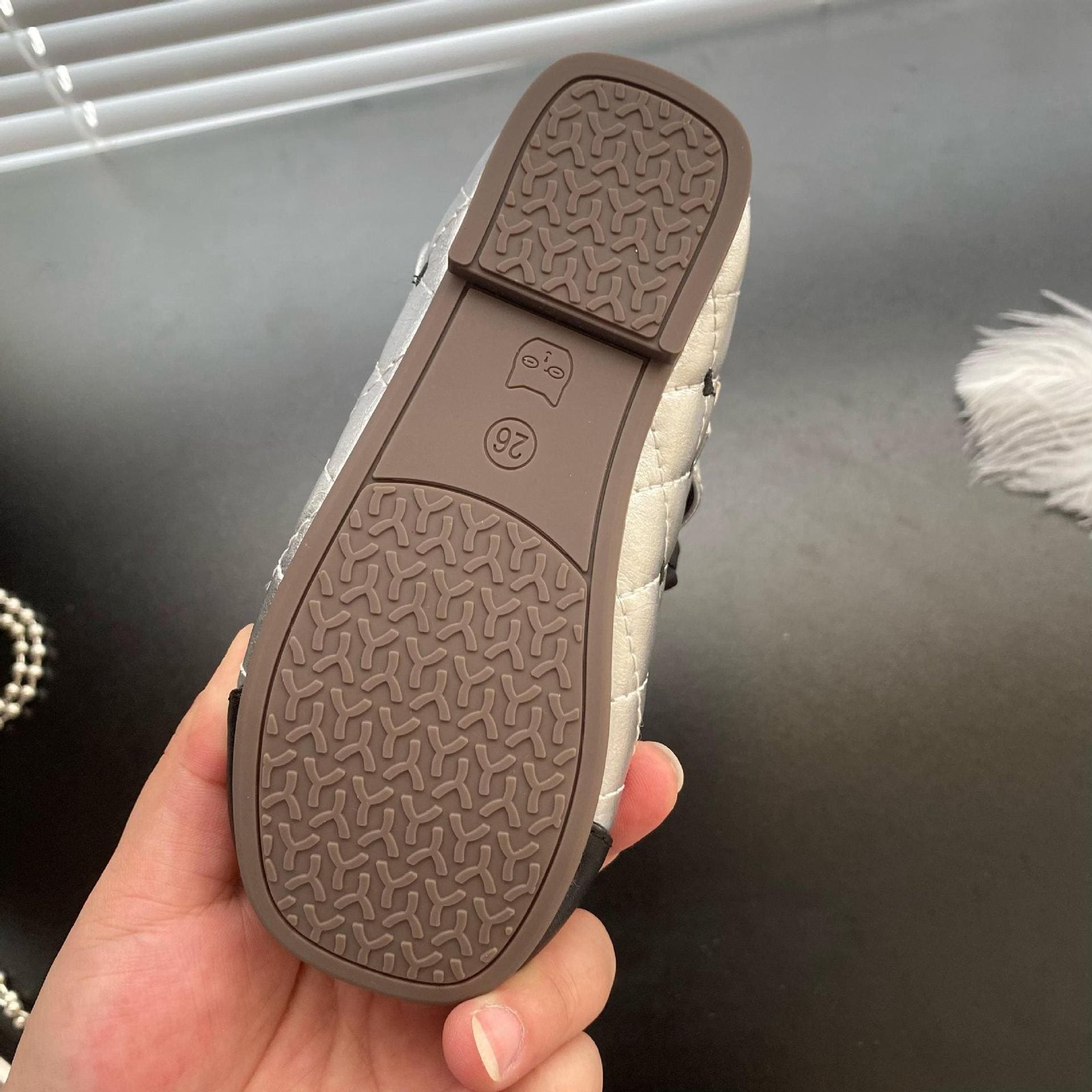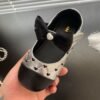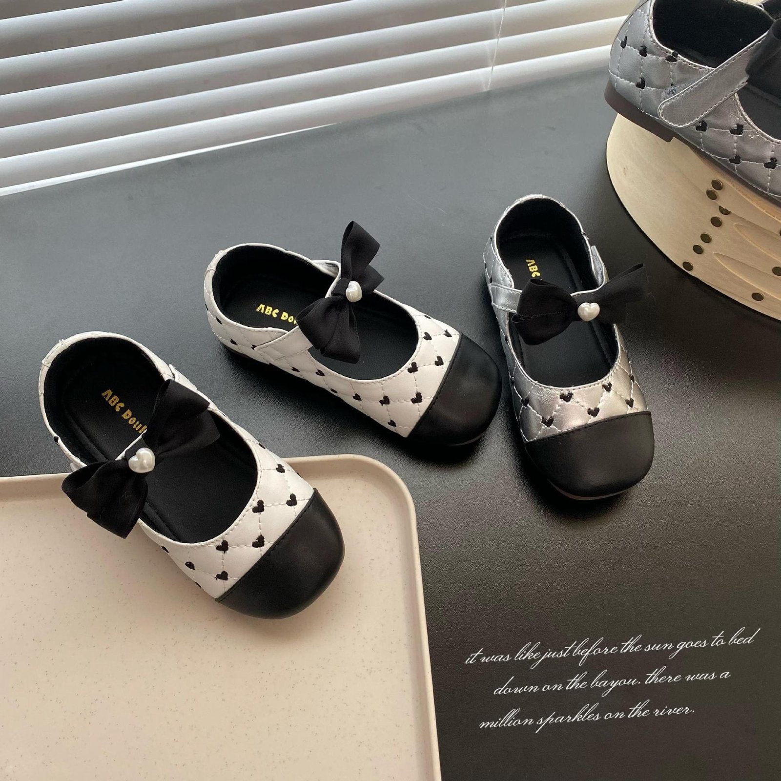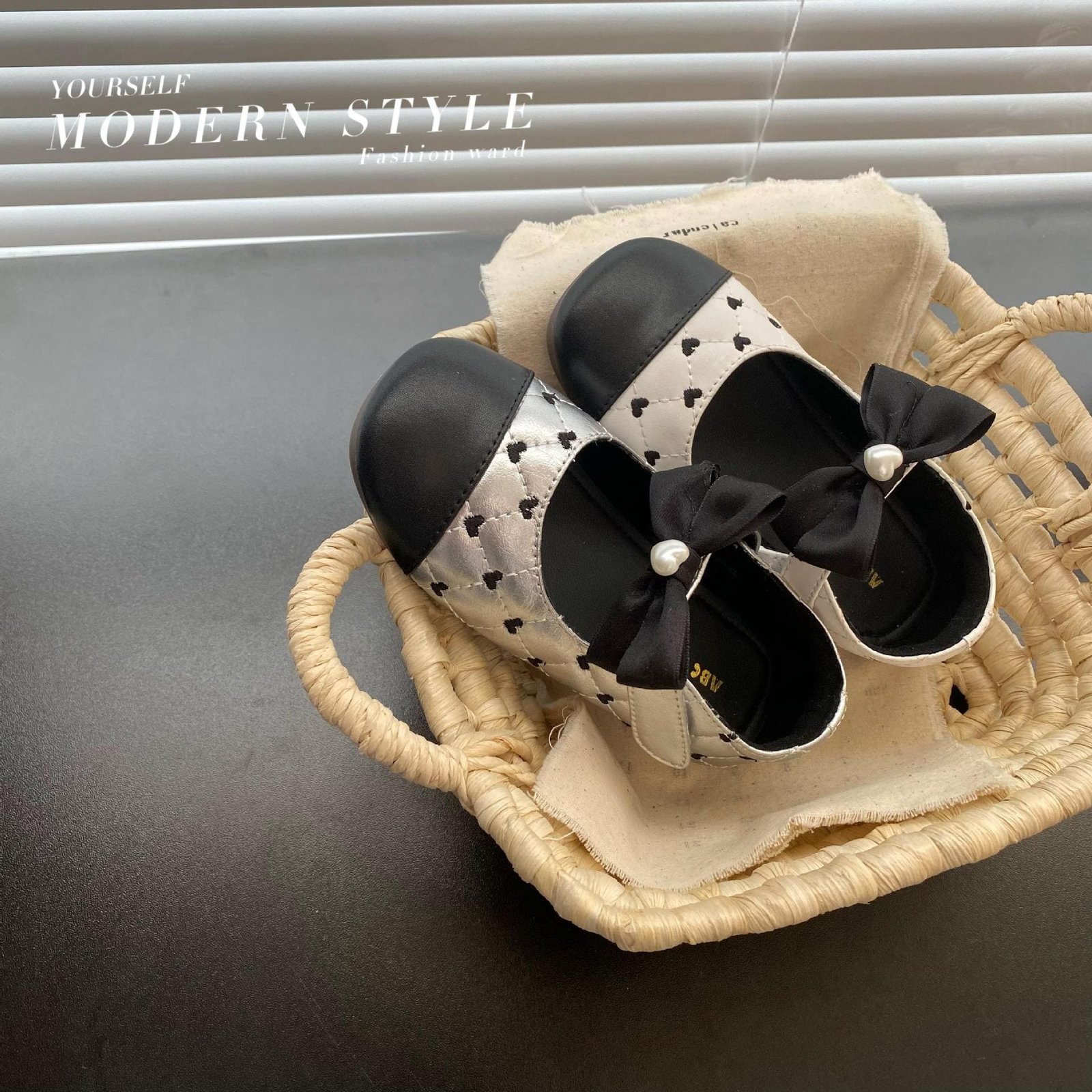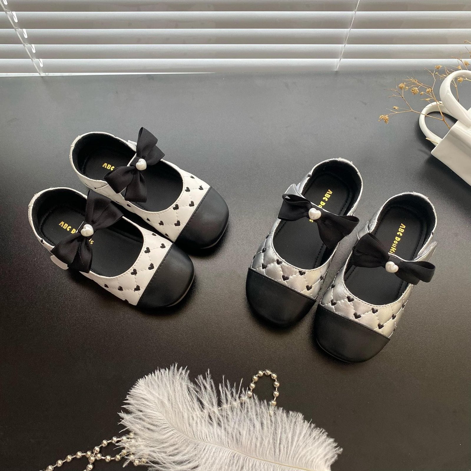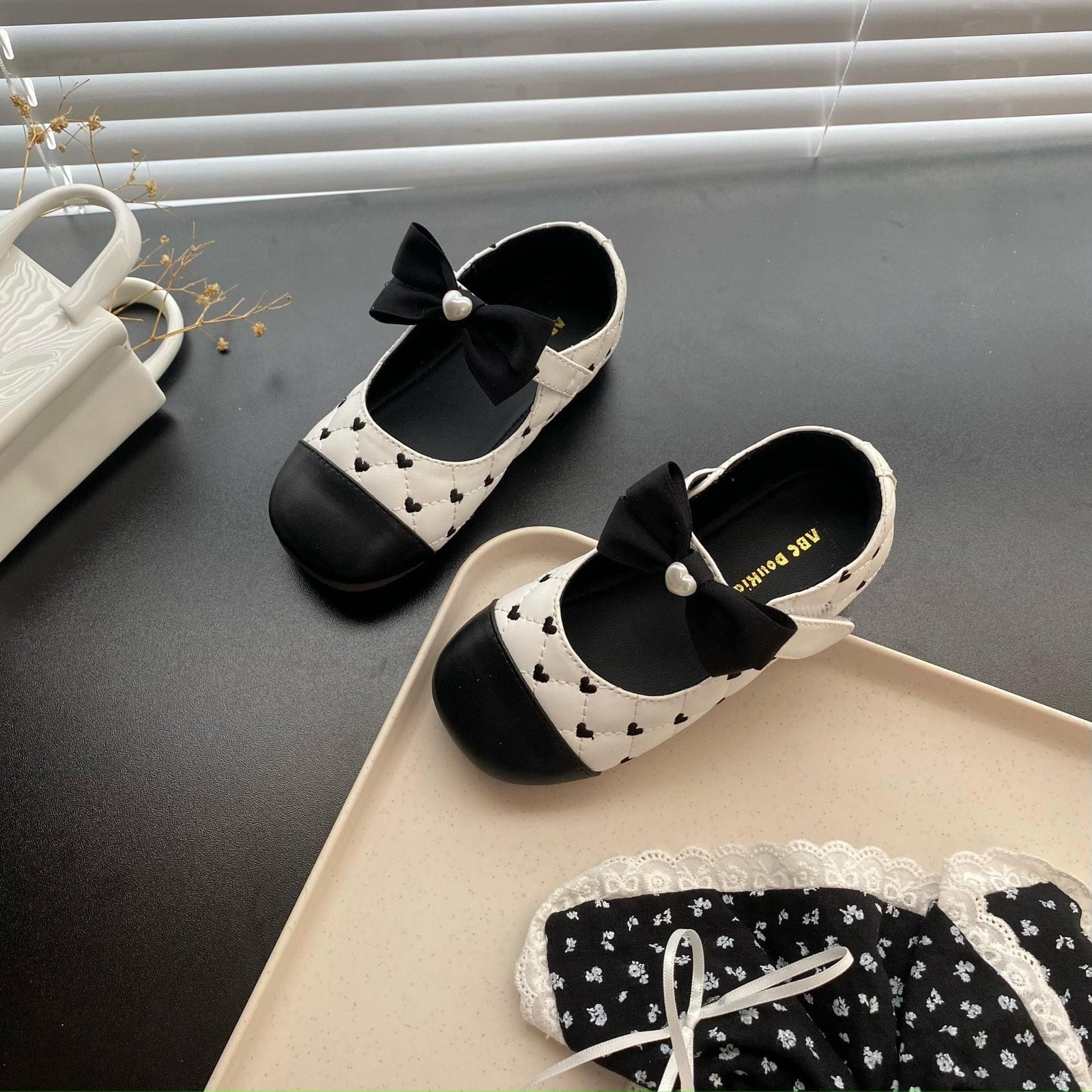 菱格紋刺繡愛心娃娃鞋
