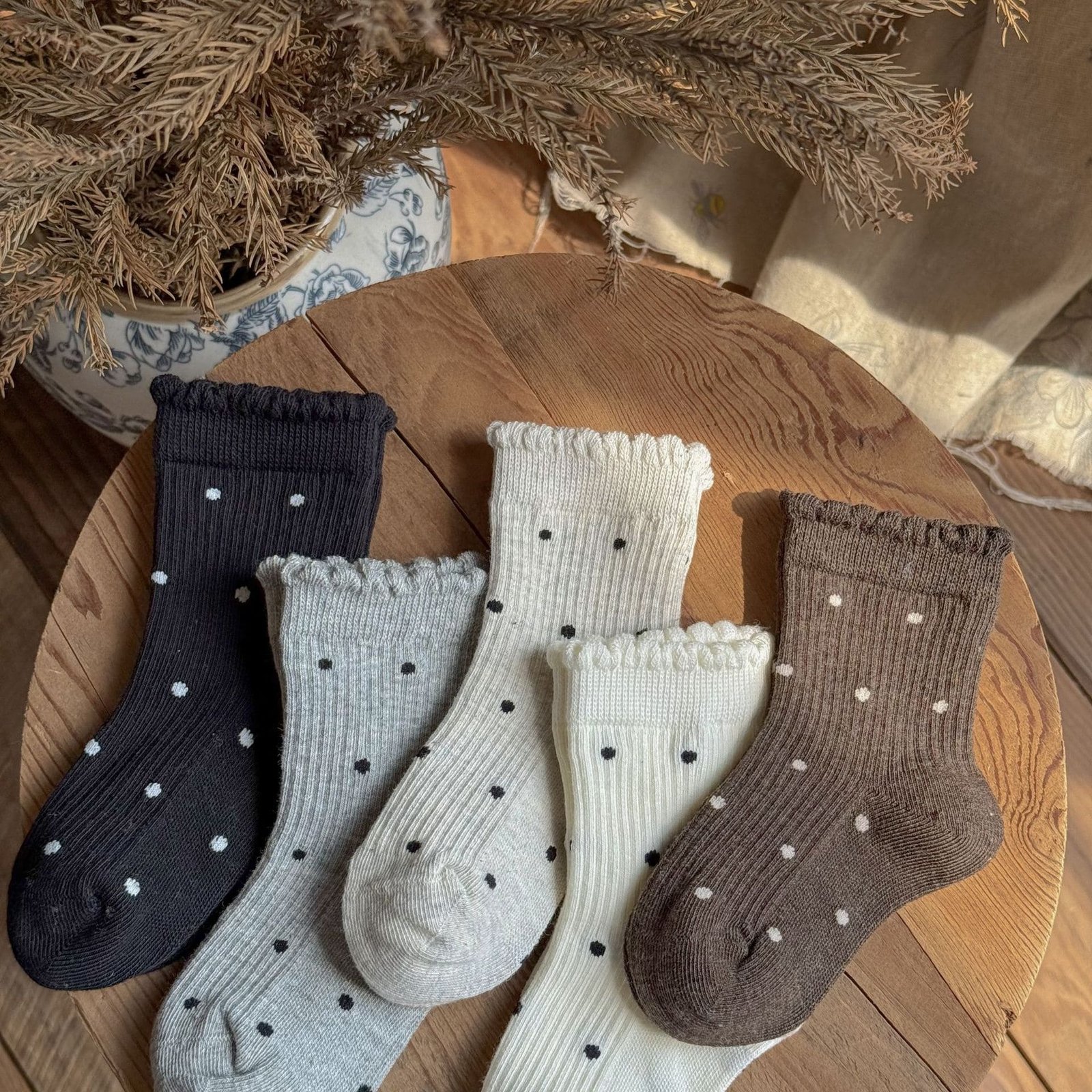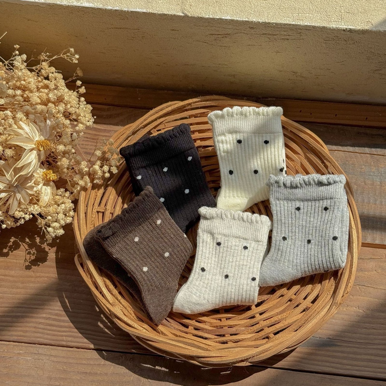/ 精梳棉點點短襪五雙一組