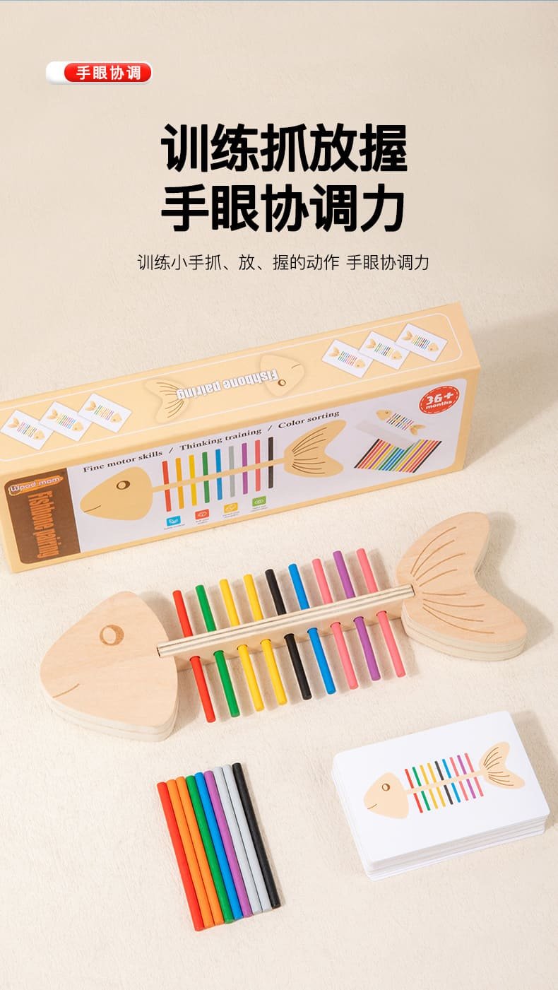 / 蒙特梭利魚骨顏色配對早教玩具