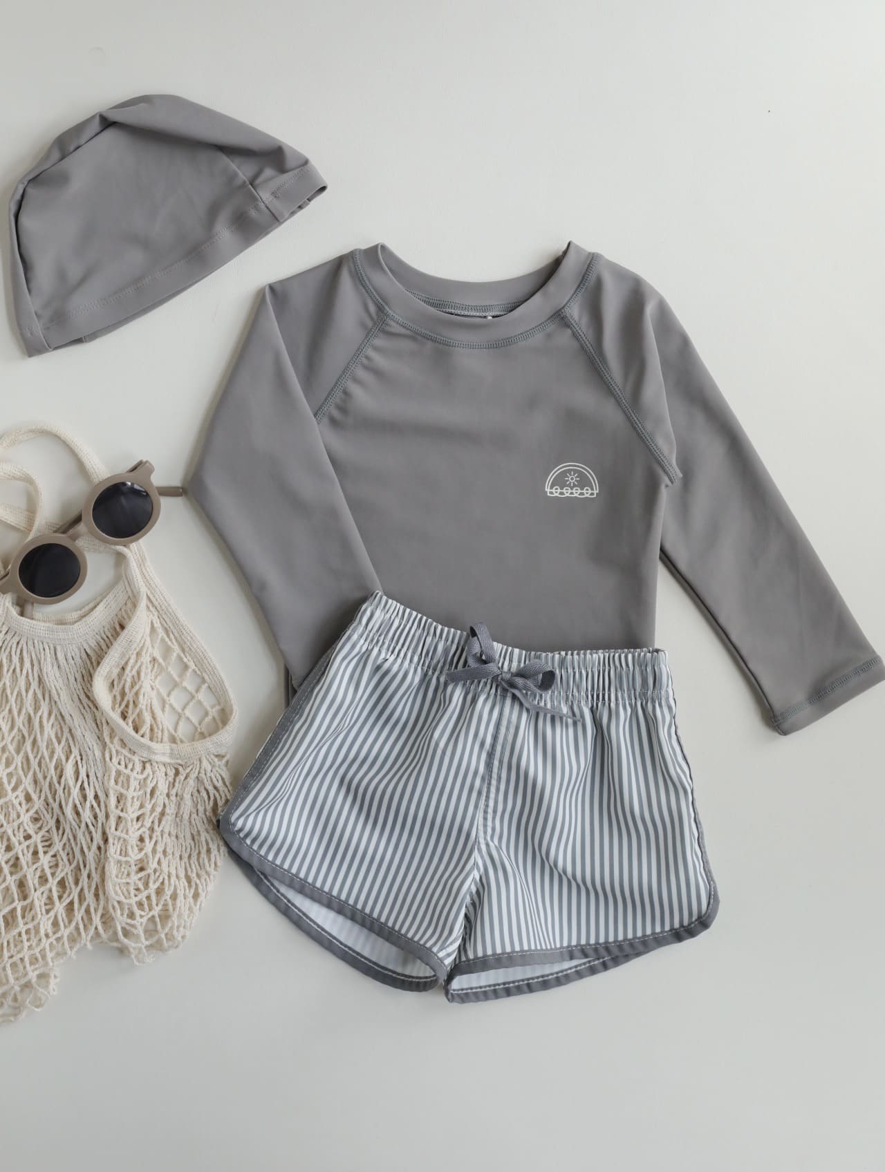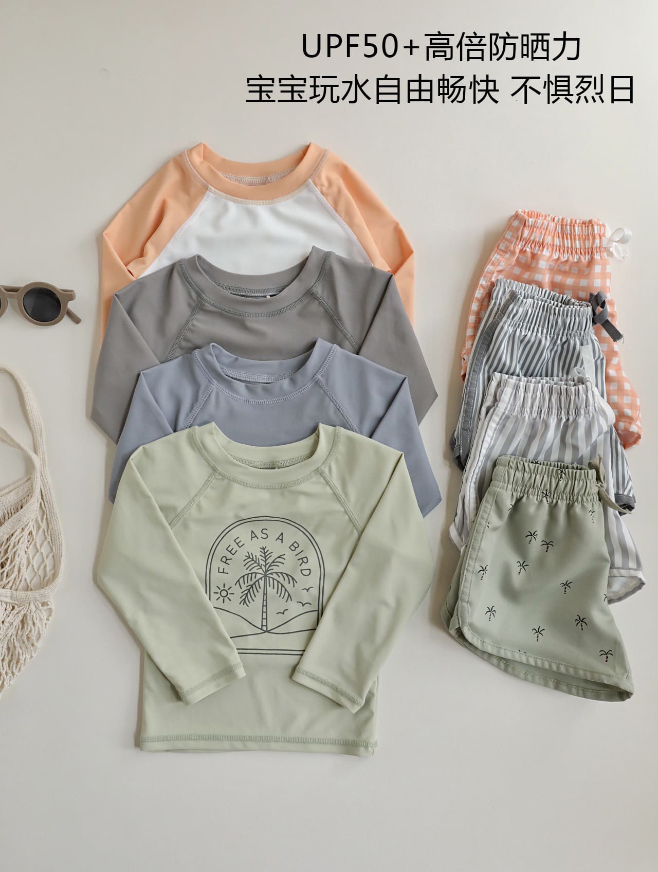 男寶簡約圖樣泳衣套裝+泳帽 數量