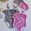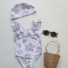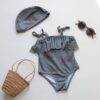/ 肩綁帶荷葉包屁泳裝+泳帽