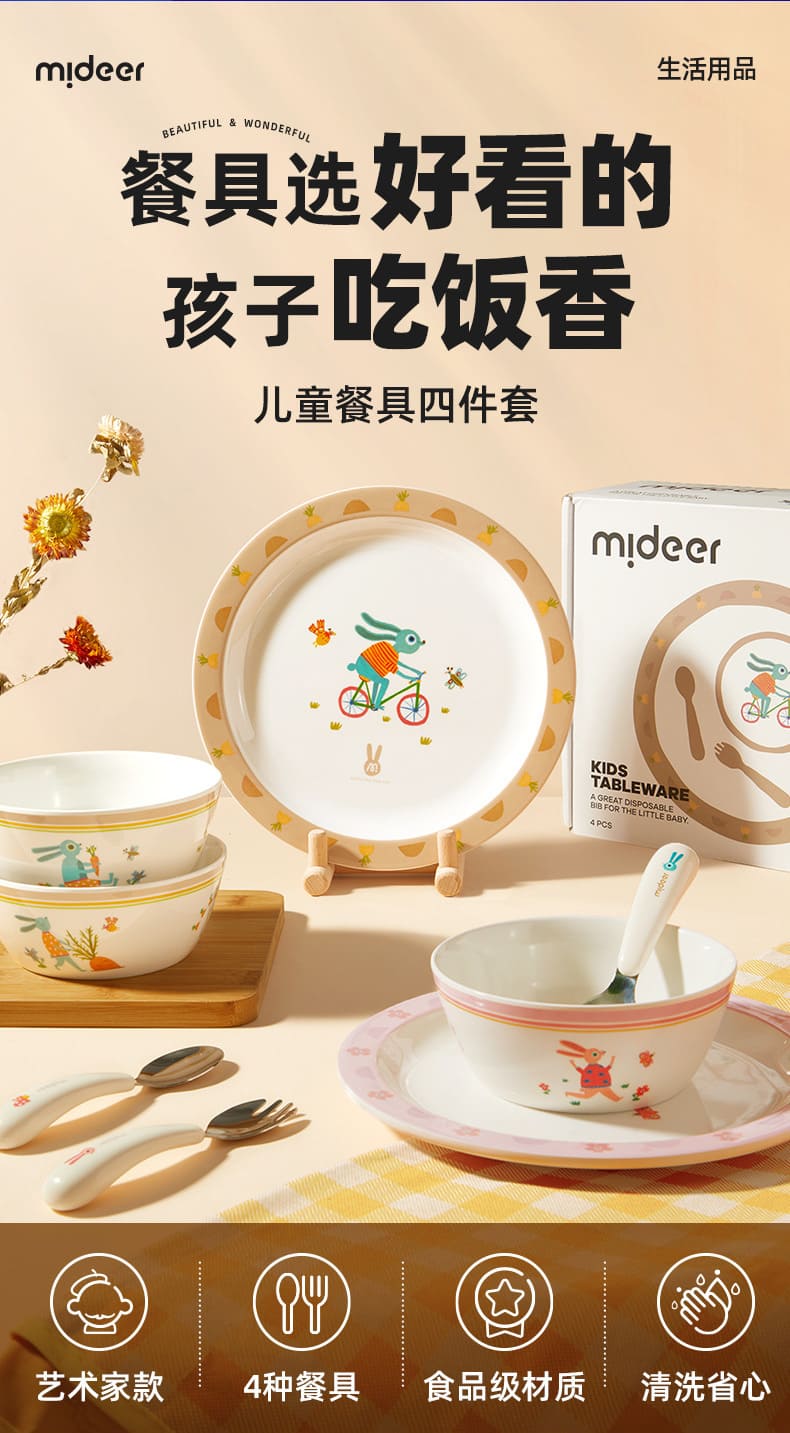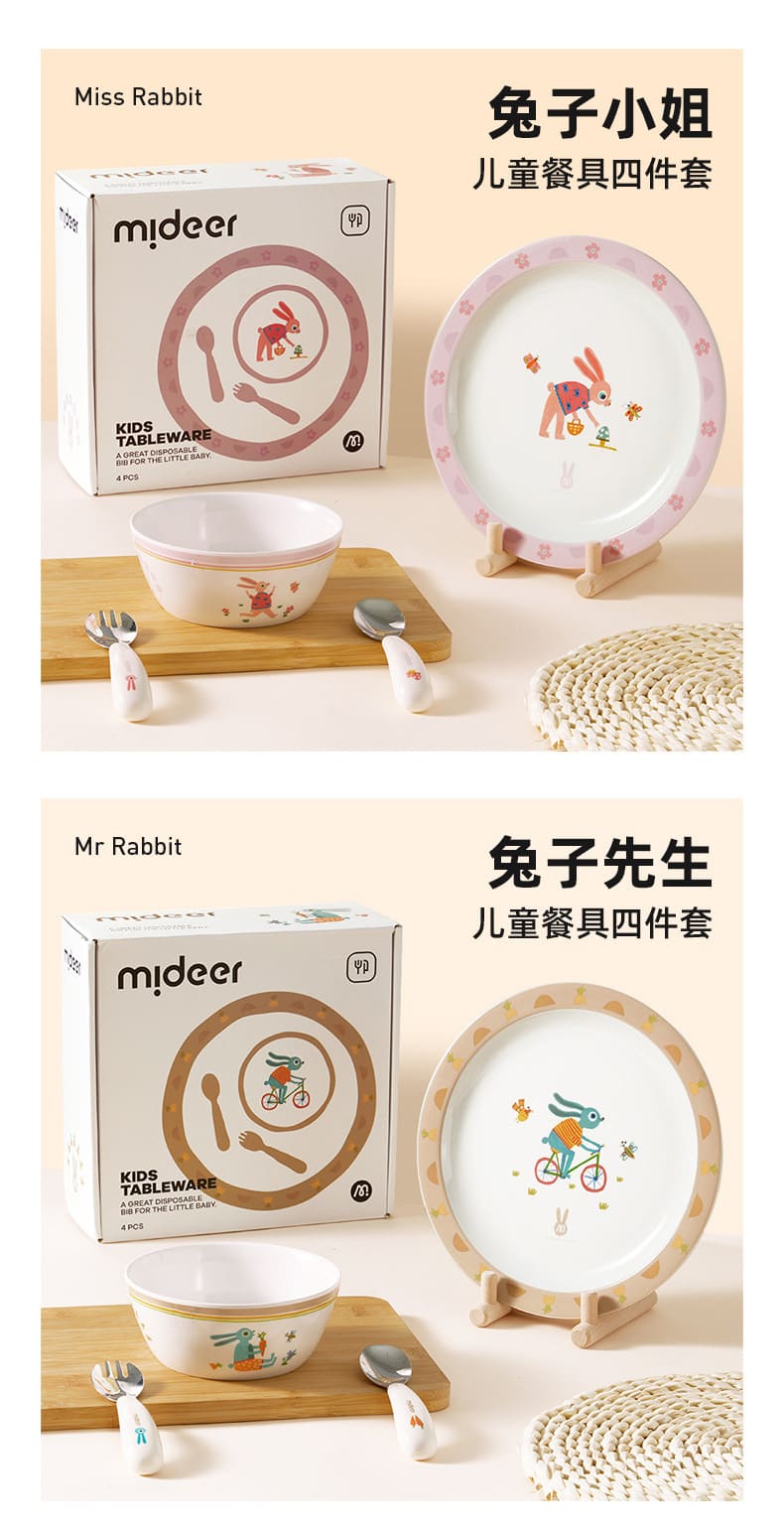 Mideer彌鹿兒童餐具四件組(盤、碗、湯匙、叉子)